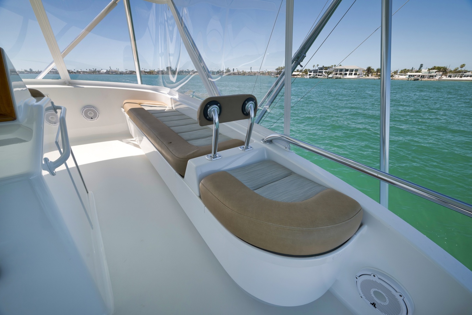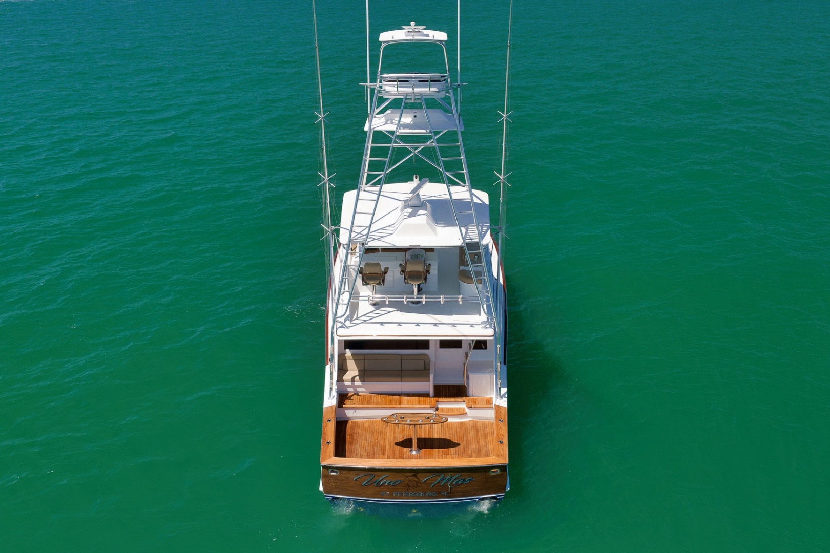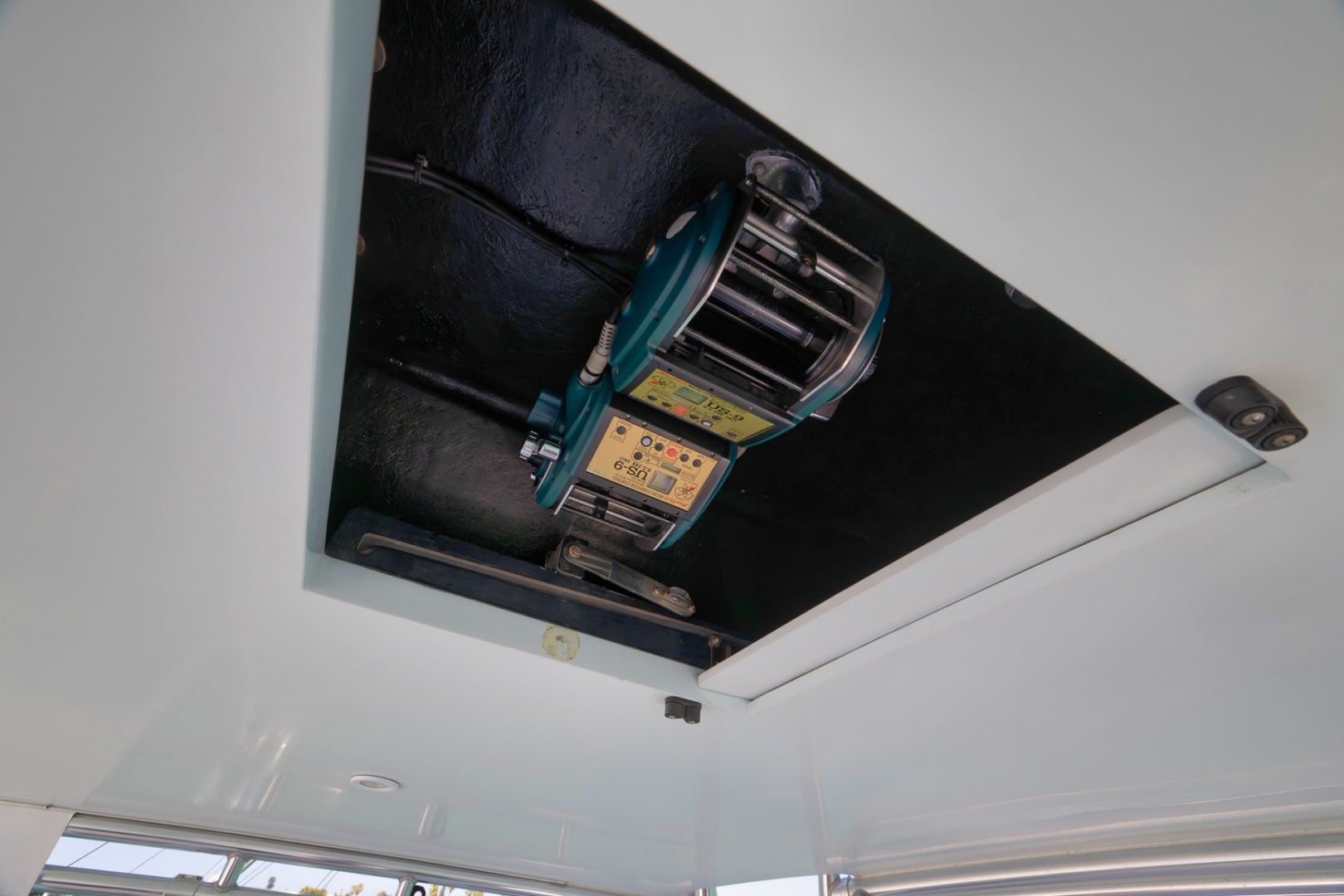 -Locker over helm with two Miya Epoch US-9 electronic teaser reels Hatch to cockpit, starboard aft
