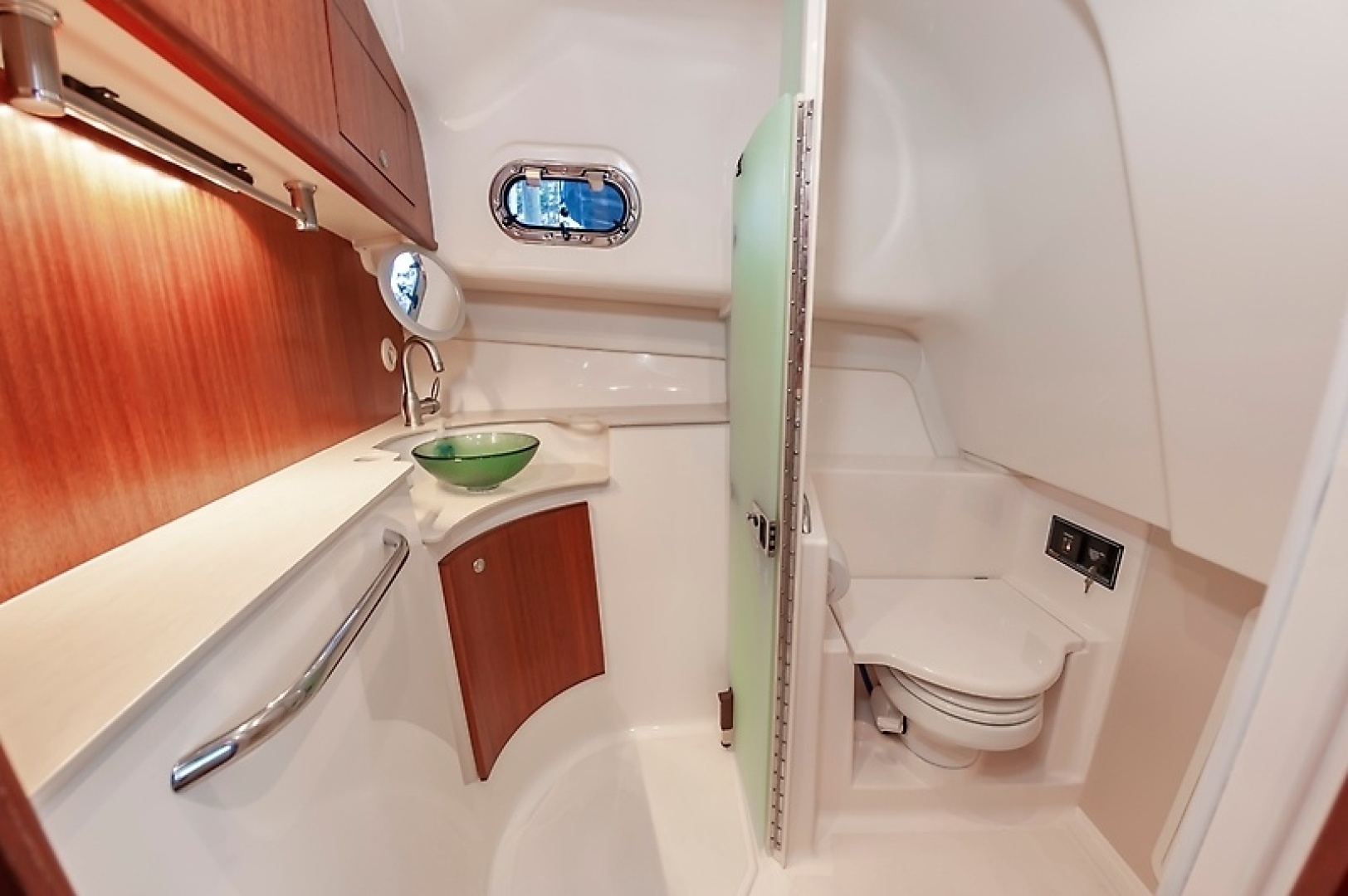 • Enclosed Head and shower with full length mirror on the inside of the door