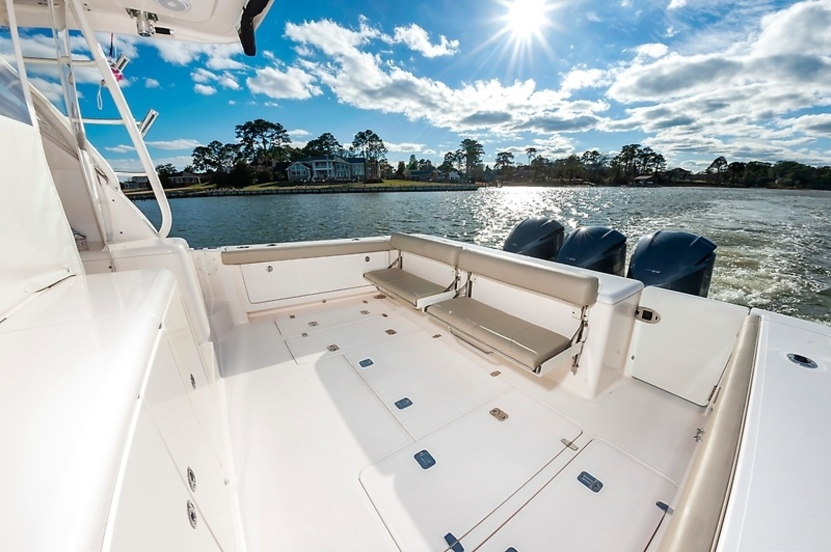 •From the stern she looks to be "all Business".• Triple 350hp Yamaha engines, 472 original hours