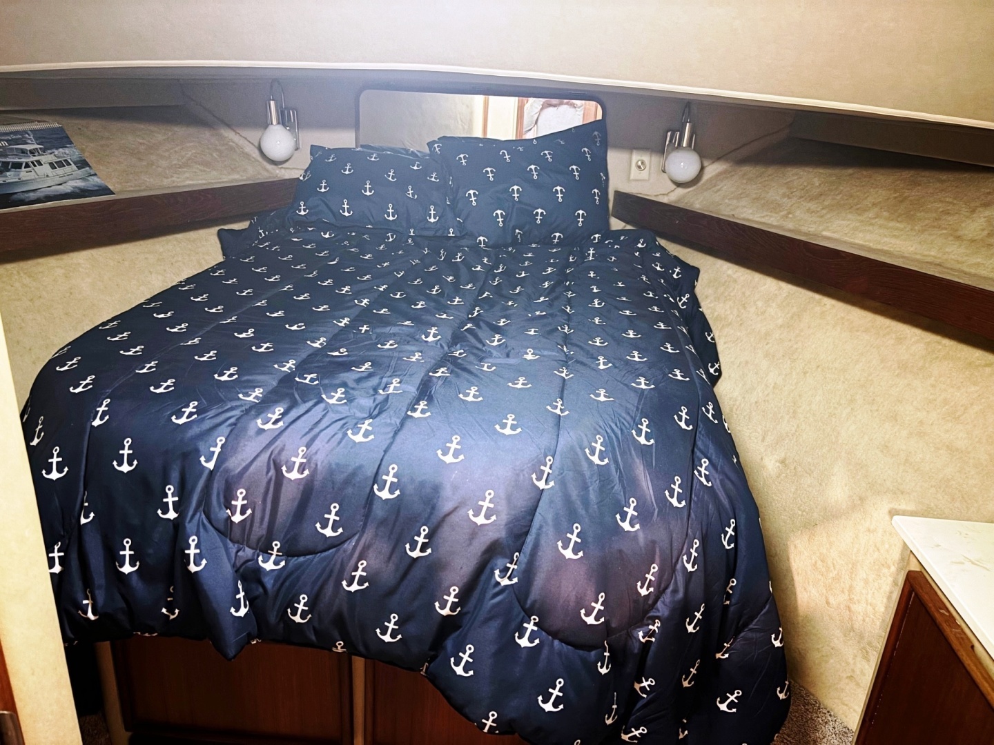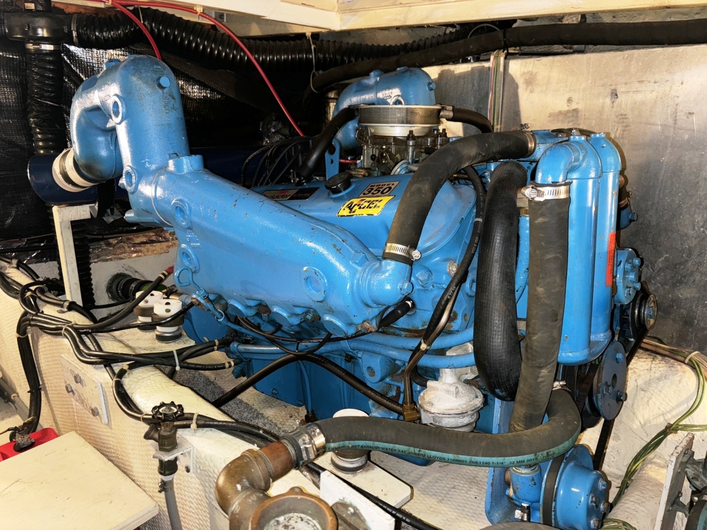 The Chris Craft 427 is a large, roomy vessel that's perfect for cruising or as a live-aboard. For those who like "home-like accommodations" the double stateroom arrangement is ideal with walk-around queen beds in each and en-suite heads. Separating the staterooms is a very comfortable main salon/galley area with a full-size fridge and dinette. Outside living is outstanding with the covered aft deck and spacious bridge deck. The 427 has a great reputation as a safe and stable platform with her modified V hull and twin 7.4L Crusaders. It truly feels like a floating lakefront home, giving you a new waterfront view everywhere you go. She’s also benefited from key recent upgrades, including Fresh bottom paint, New Garmin radar/GPS, New back up camera, New water heater, Newer Isinglass, 8D batteries new in 2025, New Bluetooth stereo, New impellers, tune up on engines and generator, New Pro Nautical battery charger, the list goes on. Please call or Email for all the details.