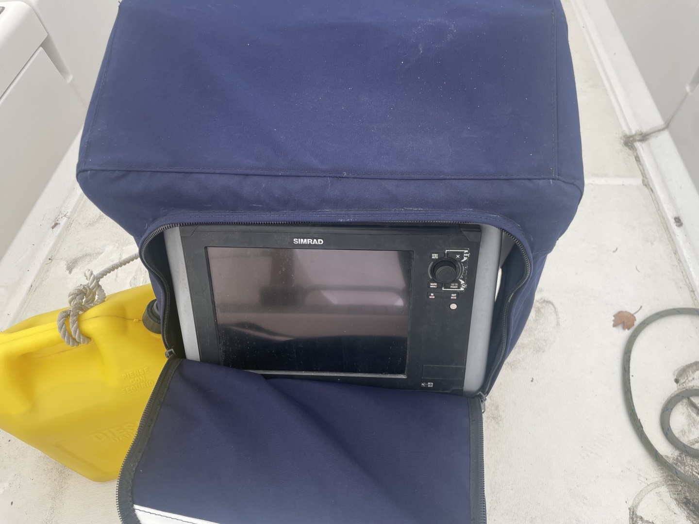 Simrad electronics - autopilot, depth, knot, wind, radar, VHF, GPS, MFD at each helm and cockpit table (3 total), stereo with speakers in cabin and cockpit, AIS