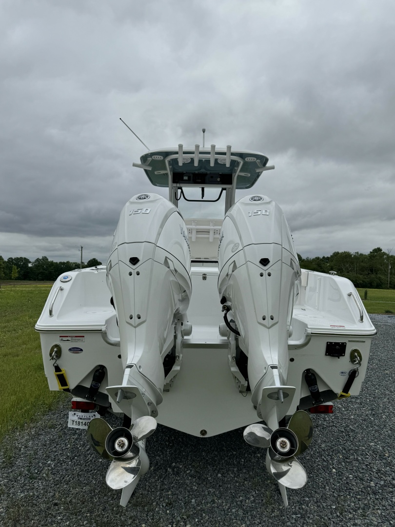 This 2024 Sea Hunt Gamefish 25 is like NEW! With only 34 hours on its Twin Factory White Painted Yamaha 150s with Yamaha warranty through 5/2029! Just completed annual engine service!
