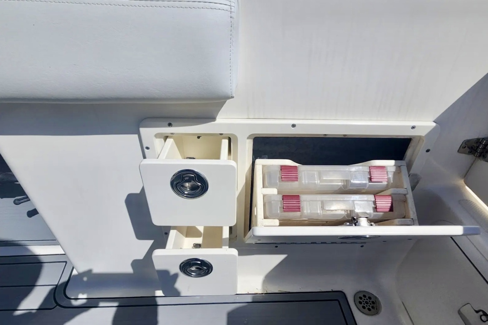 The layout is designed for both performance and entertaining. The recently installed SeaDeck provides improved comfort and traction throughout. All exterior cushions were custom redone, giving the boat a clean and updated appearance.