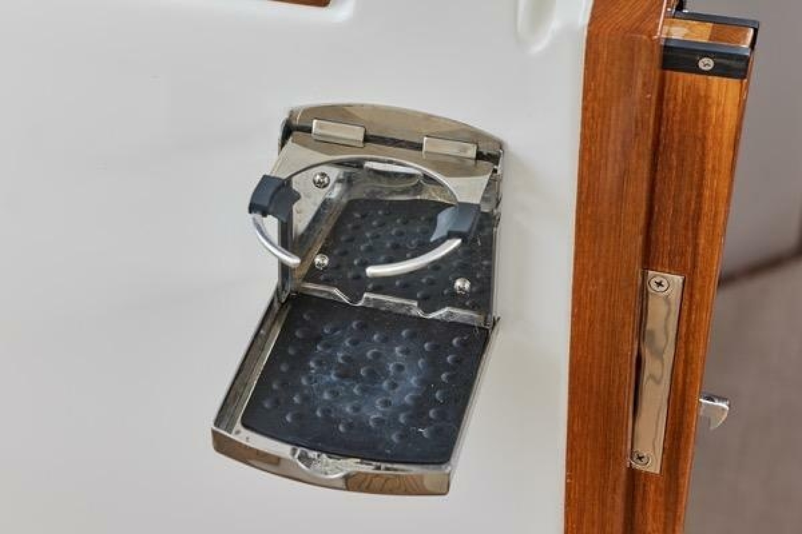 - Shower access to starboard from forward cabin with seat as well as towel & toiletry storage bin outboard.