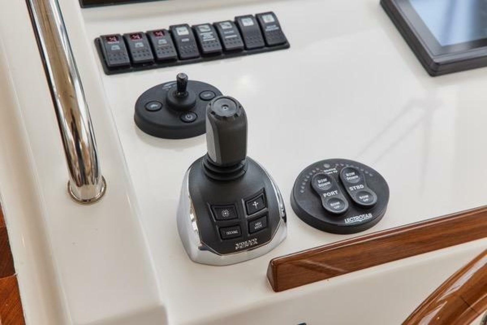 40z #81 is very well equipped, with only 450 hours on her engines. The MJM 40z is often recognized as the best forty-foot performance cruiser afloat. She is one of the only two 40 yachts ISO certified category A Ocean. The classic modified deep-V Doug Zurn hull provides a smooth, dry and stable ride. She cruises at 32 knots and is capable of 38 knots. The dual lifting strakes, chine flats and 19-degree transom dead rise provide unmatched stability, level acceleration and dry ride. Thanks to strong, lightweight, heat-cured, epoxy with E-glass construction, her fuel efficiency is as much as 50% better than conventional yachts. The joystick controlled, twin IPS Volvo Penta drives (New) make docking easy and the DPS station keeping function provides a way to pause for lunch without deploying the anchor. The panoramic sight lines, open galley with dinette, pilot house and cockpit on the same level, side boarding doors at floating dock level, strataglass side windows, power-operated front windshields combined with a SeaKeeper Gyrostabilizer contribute to the ease, comfort and performance of this classic yacht.