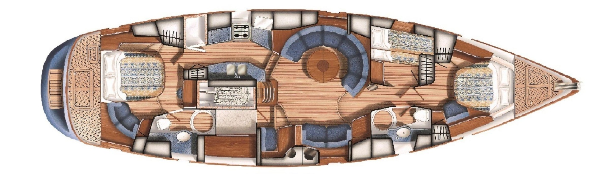 4 cabin / 2 head layout