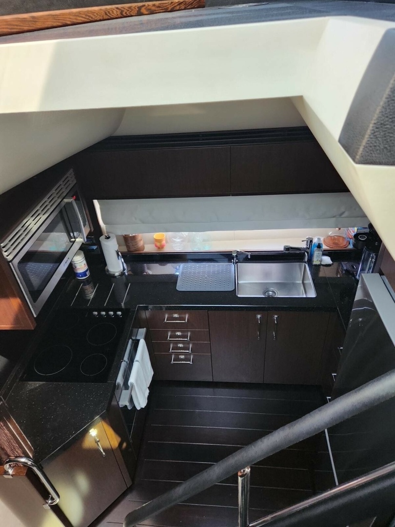 - Flybridge bar with sink, barbecue, top loading coolbox, waste bin, storage and optional icemaker