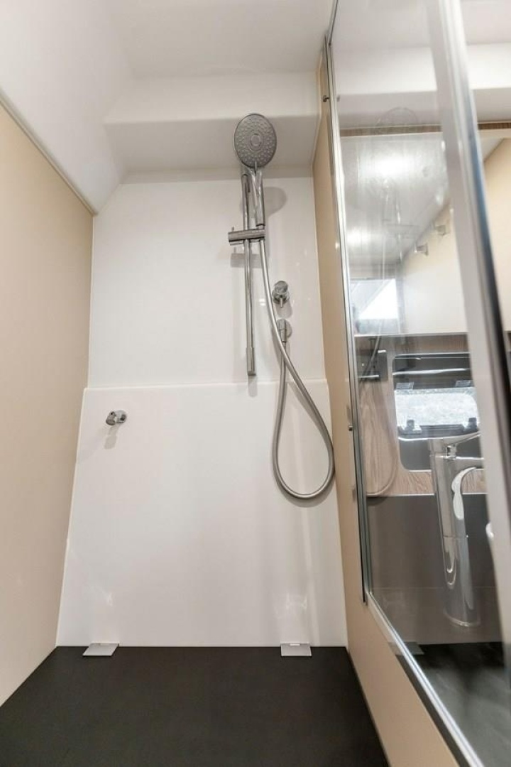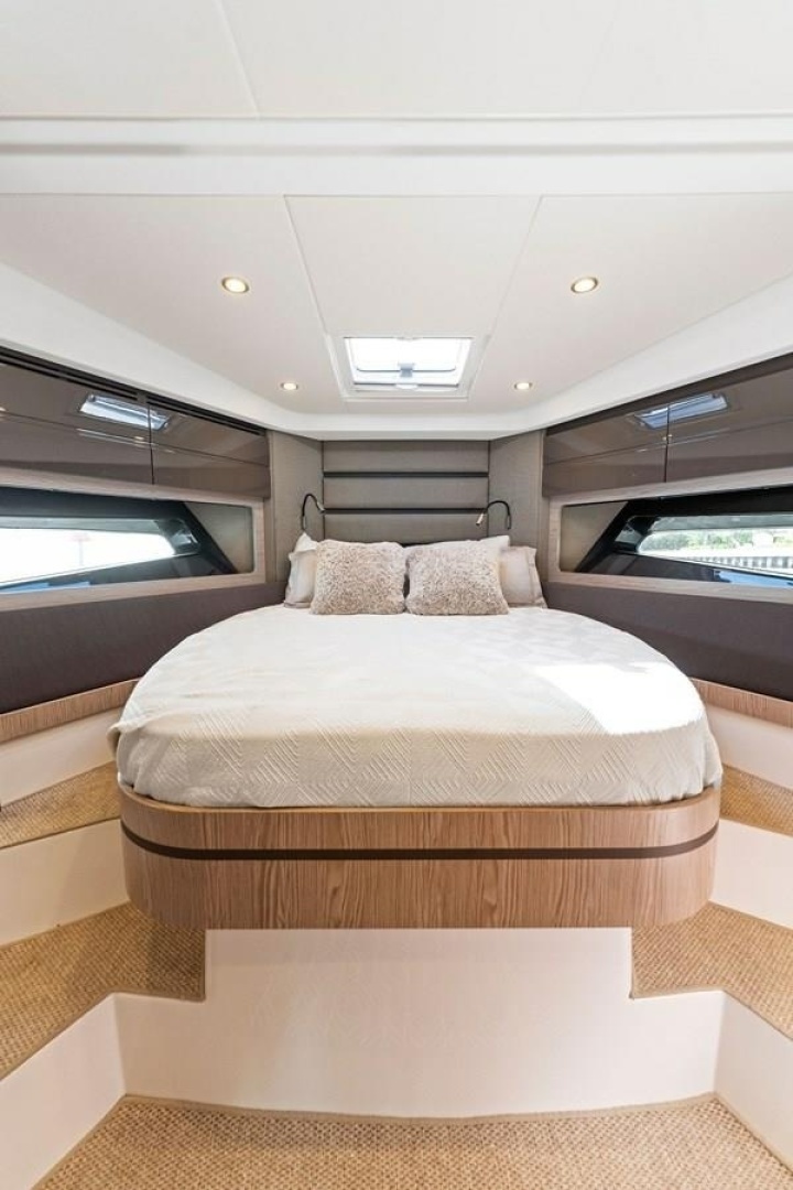 Well-organized living spaces create a liberating dynamic on the main deck, while spacious interiors evoke an airy, lively mood. Versatile design adaptions cater to diverse lifestyle demands, as the contrasting synergy of materials, from matte to glossy details, inspires a neat sense of style.