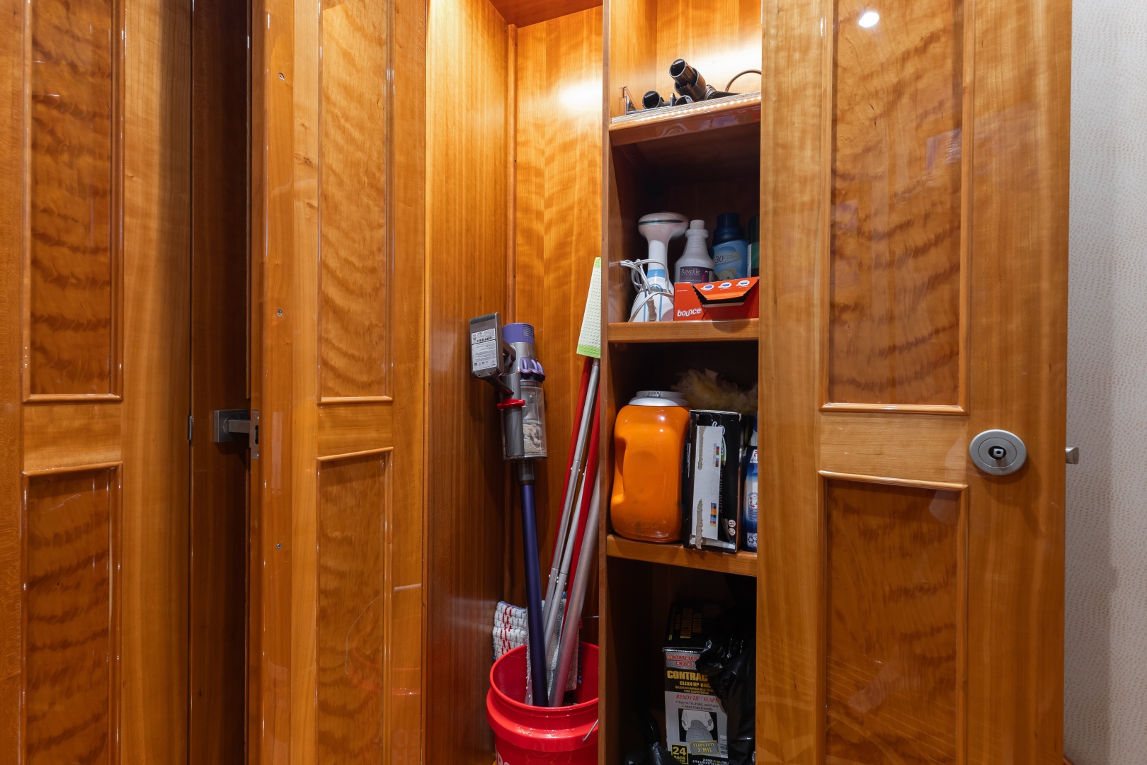 Step aboard and into a salon that immediately sets the tone for the entire vessel. The custom high gloss cherrywood interior, complemented by authentic cherry and holly flooring throughout, radiates a warm, classic elegance that is rarely found at any price point. The wide 22-foot beam transforms the living space into a genuinely grand environment, filled with natural light and thoughtfully appointed at every turn.