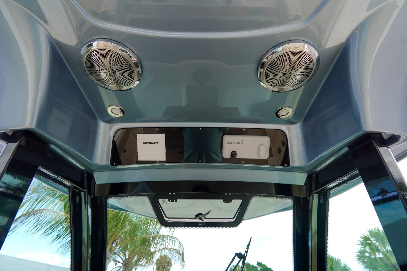 This fully equipped center console delivers exceptional performance, luxury, and cutting-edge technology, powered by twin Mercury Verado V10 350HP engines with DTS, joystick piloting, and electric steering—producing an impressive 700HP for smooth, responsive handling and offshore capability.