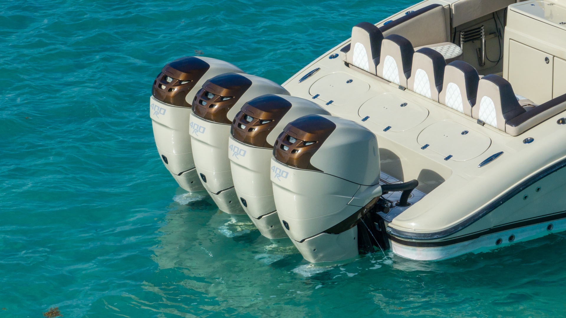 - The quad engines are custom painted to match the hull, creating a seamless and aggressive look from stern to bow