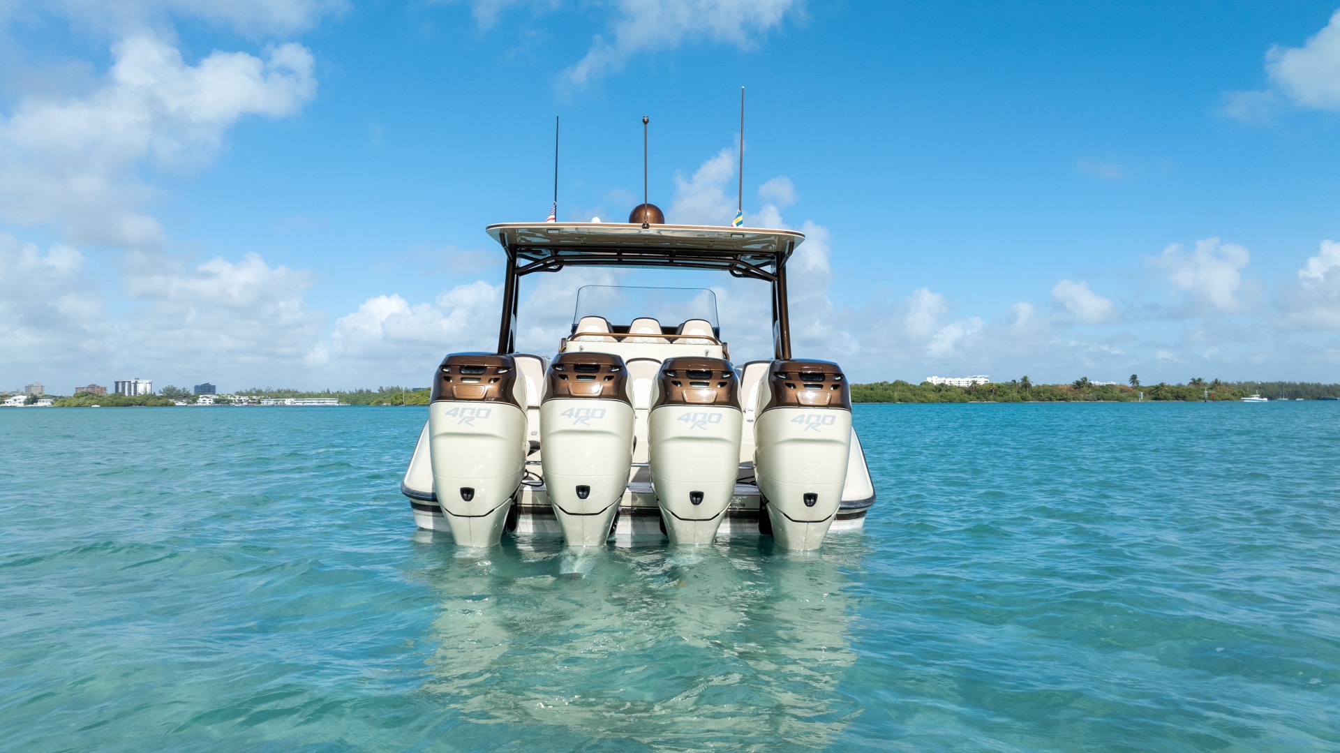 - Quad Mercury Verado 400R outboards delivering over 1,600 horsepower