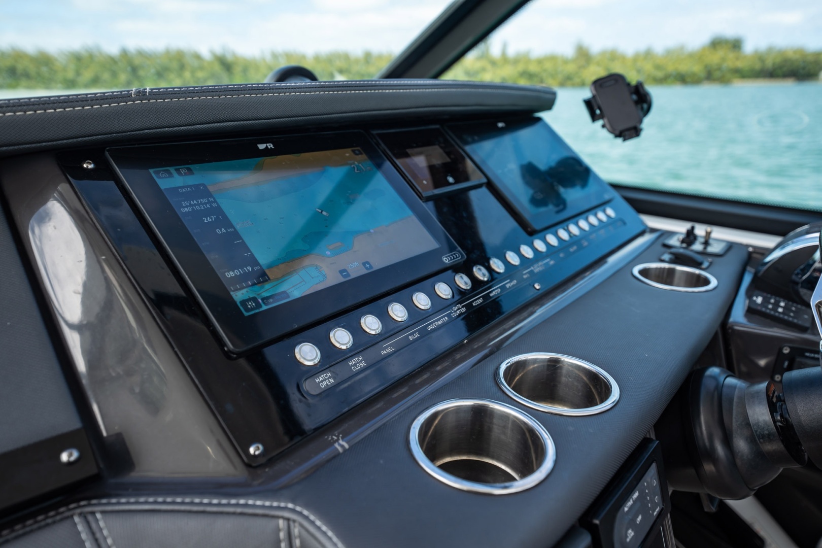 The Axius joystick control makes docking easy and relaxing. She is equipped with dual Raymarine touchscreen displays.