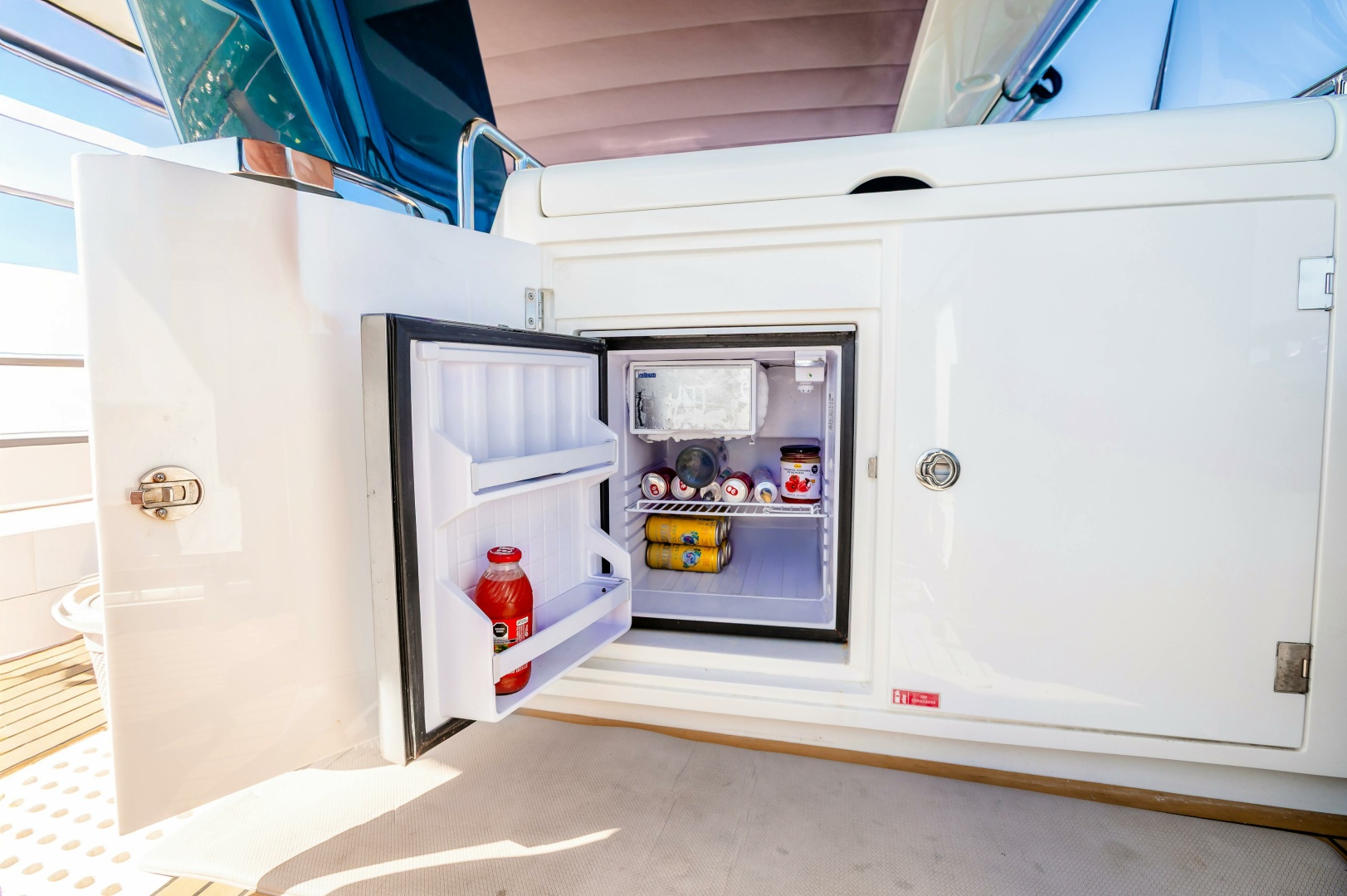 - Hot and cold water in all headrooms, galley, cockpit, flybridge sink, and fly shower