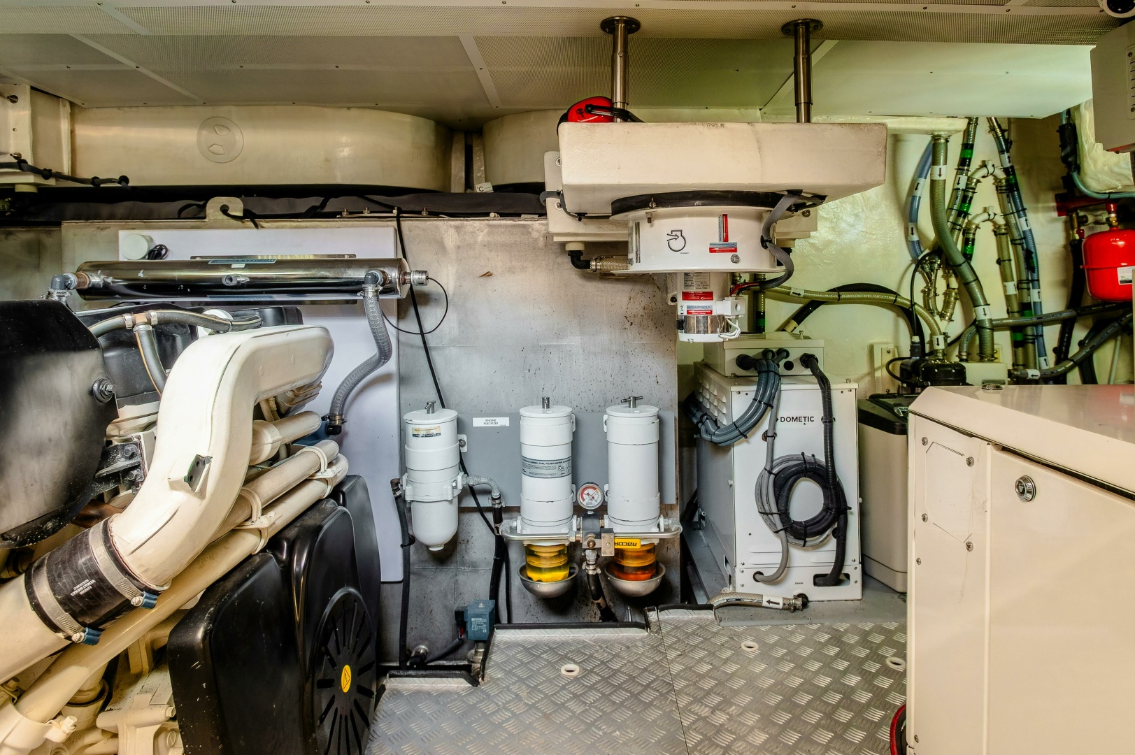 The system utilizes multiple air-handler units to deliver balanced cooling to the salon, staterooms, and lower accommodations, ensuring optimal comfort at anchor or underway.