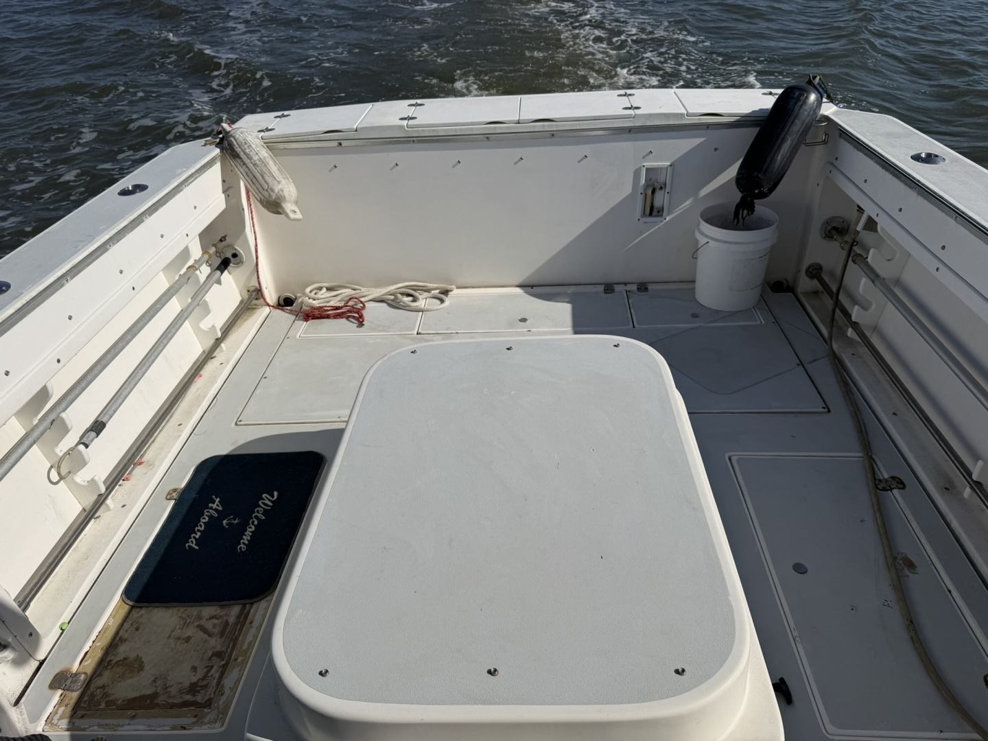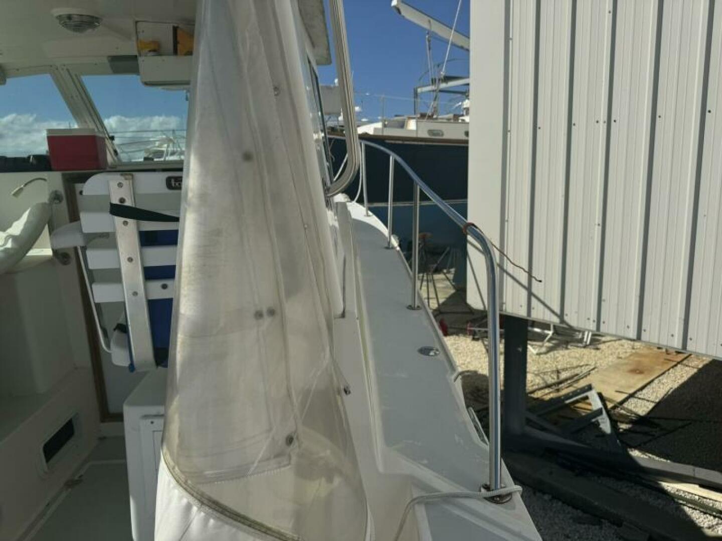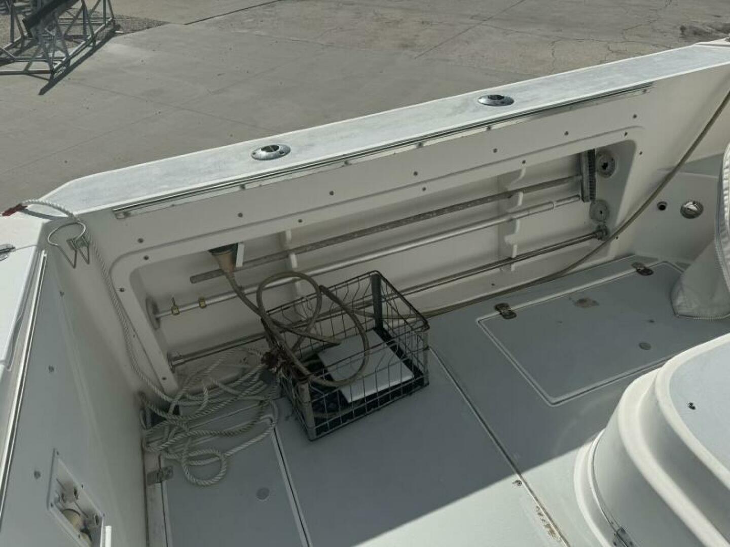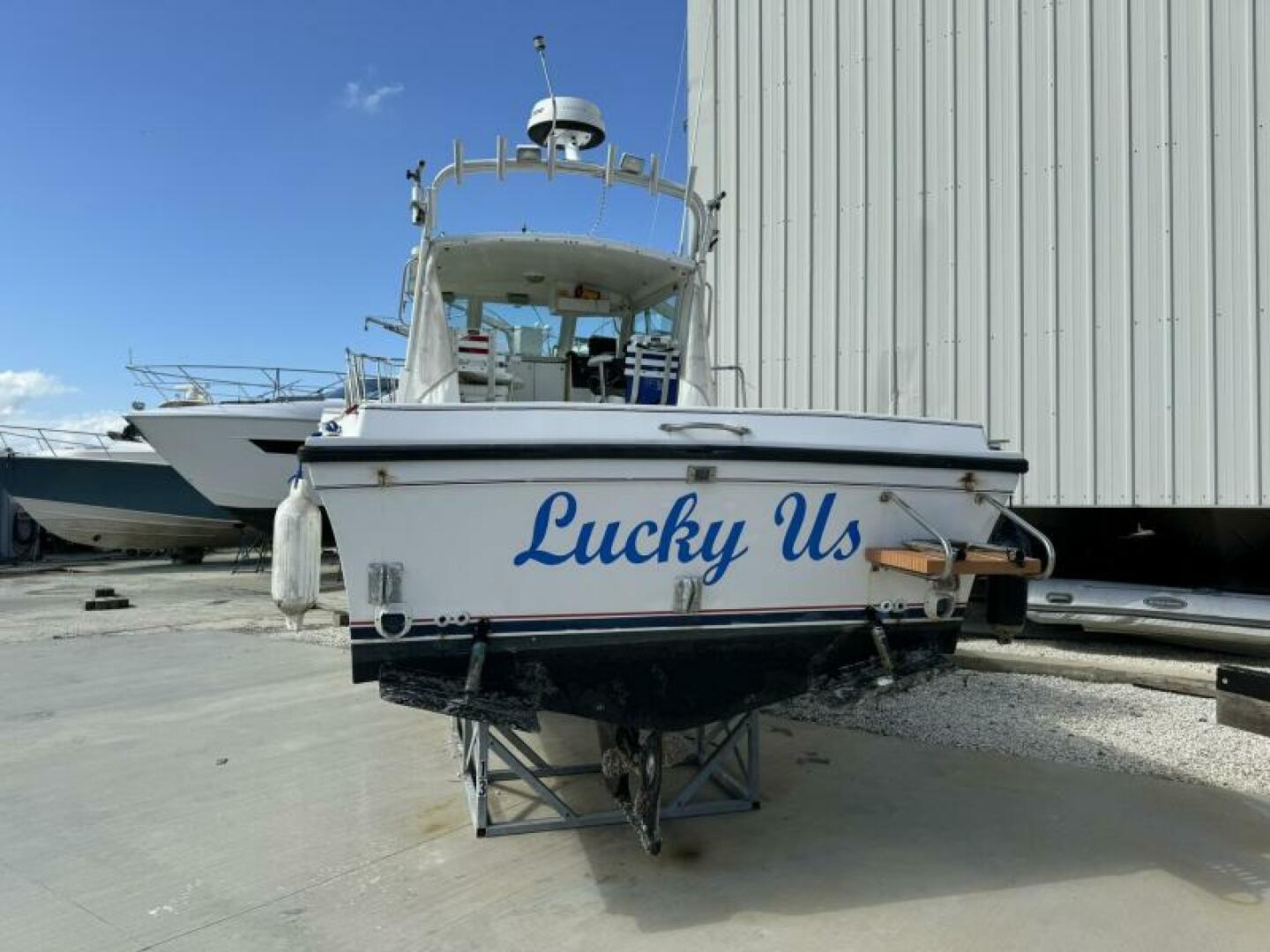 heat, bow thruster, and a custom aluminum radar arch with rocket launchers. That combination makes this boat far