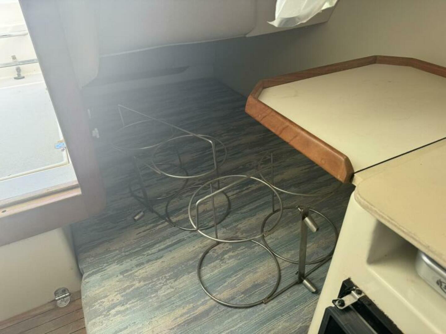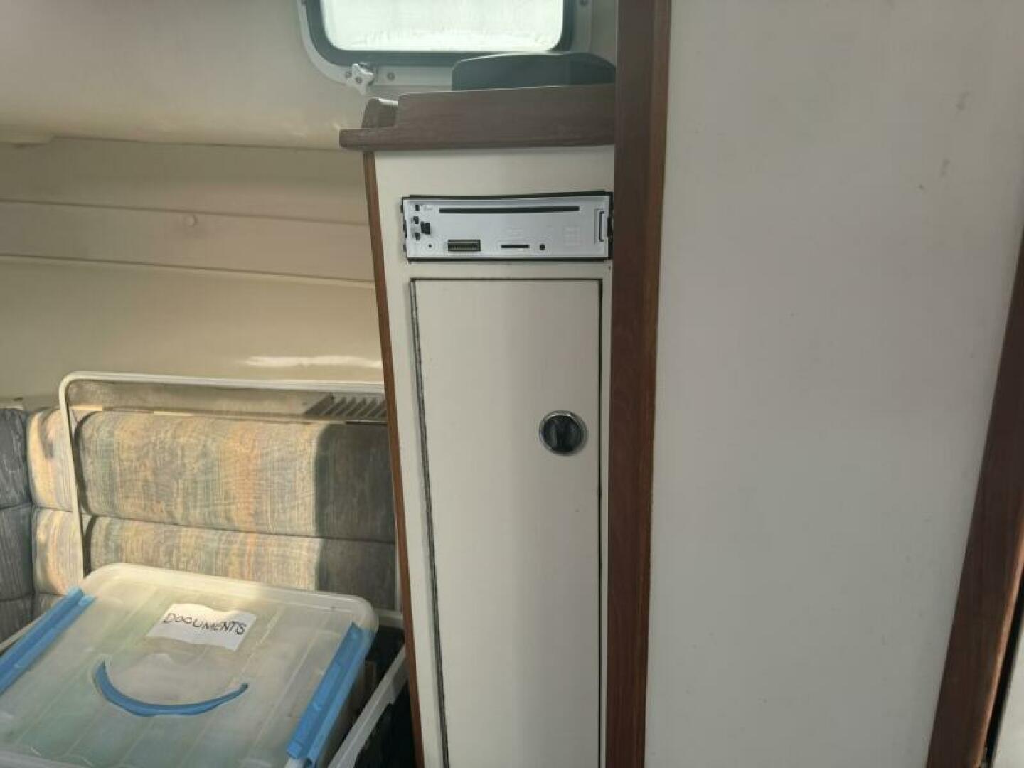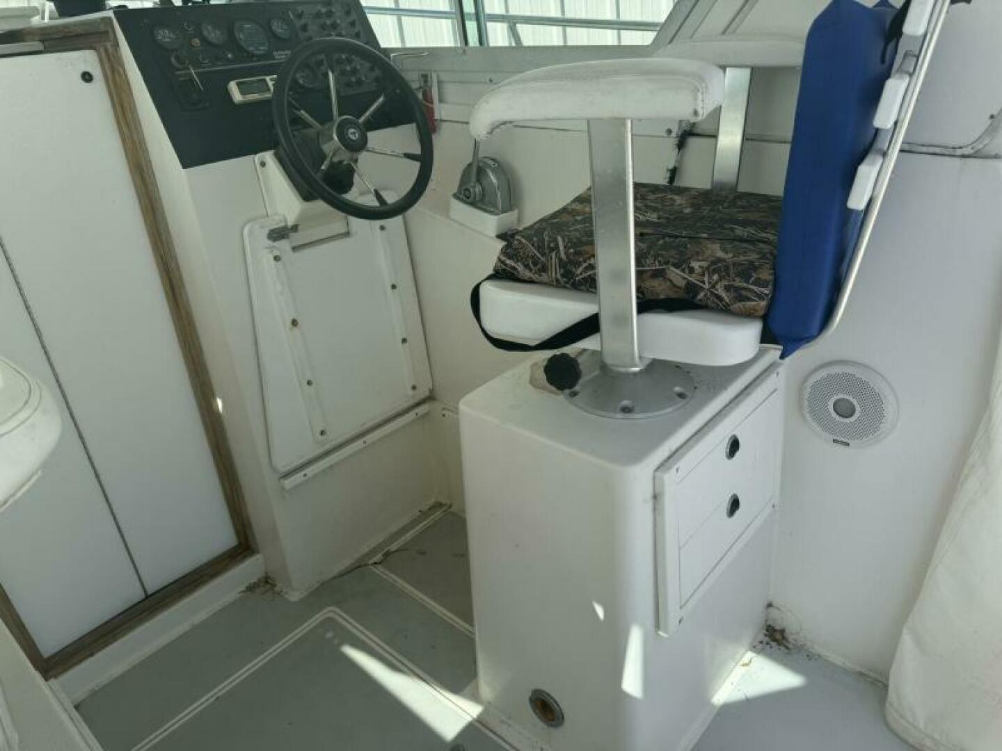 Below deck is a surprisingly roomy interior with the comforts of a larger vessel. With a full-service galley with fridge and microwave. Stand Up Head/Shower. Mid Cabin berth aft and a convertible U-Shaped dinette forward.