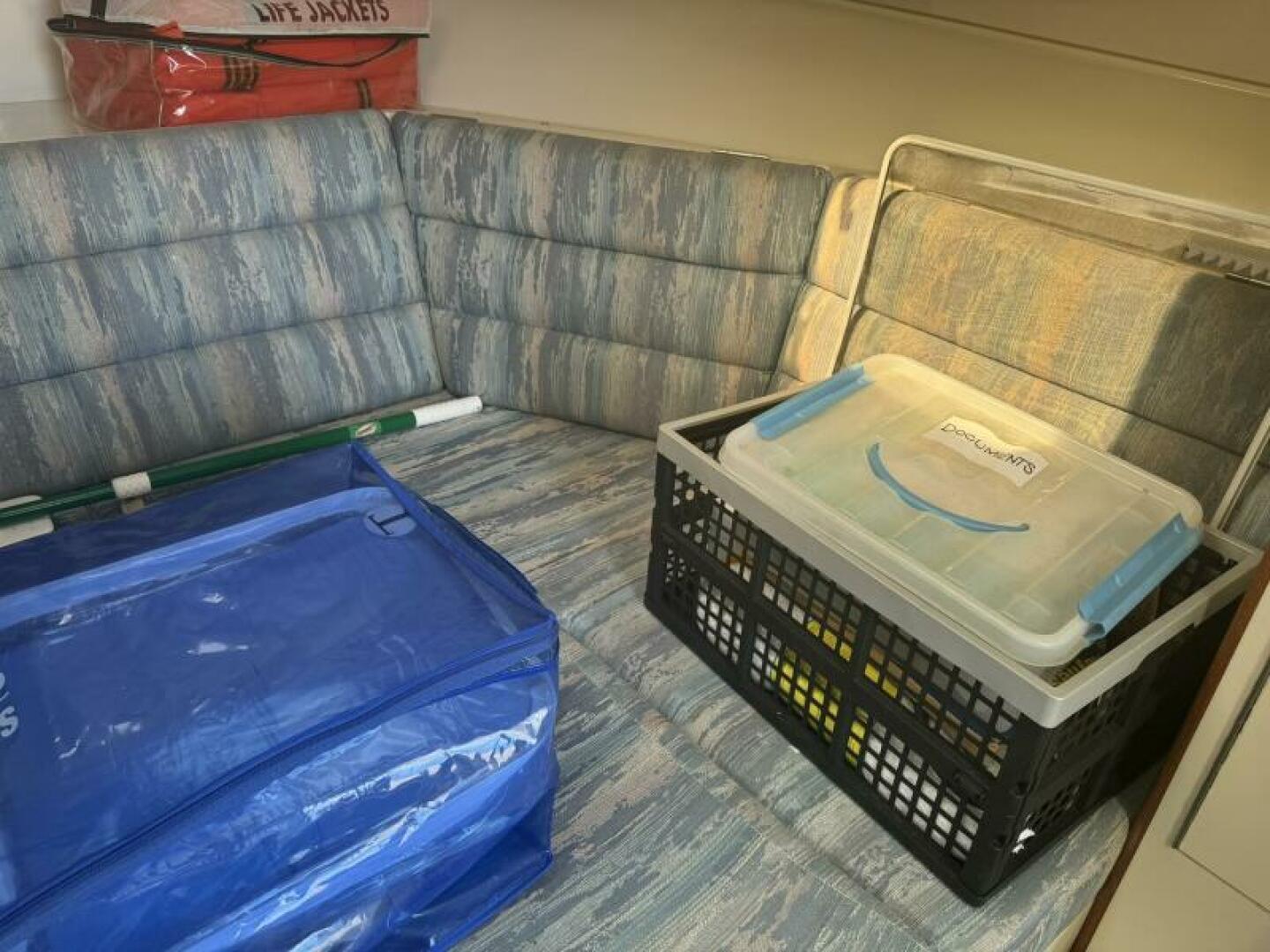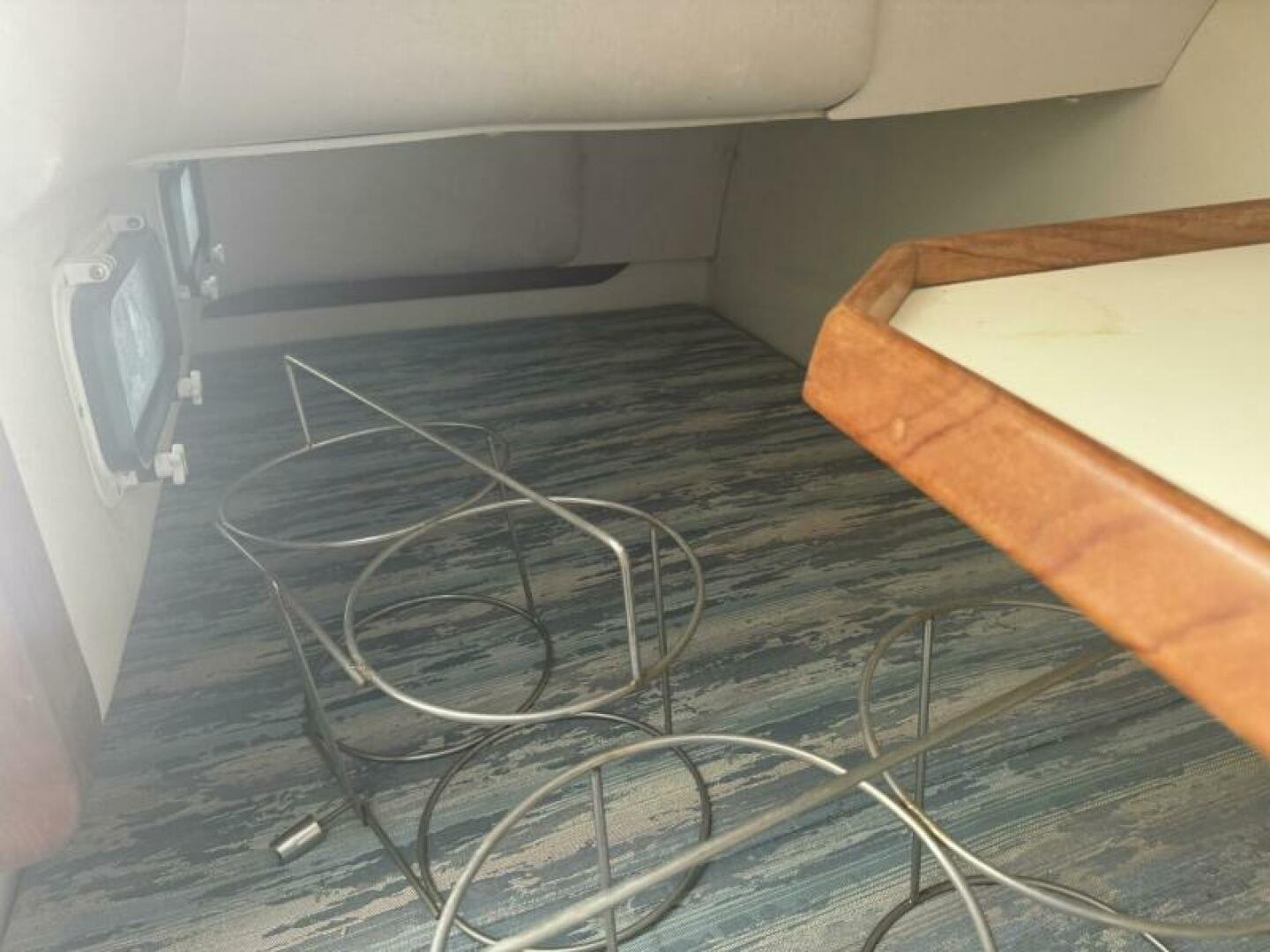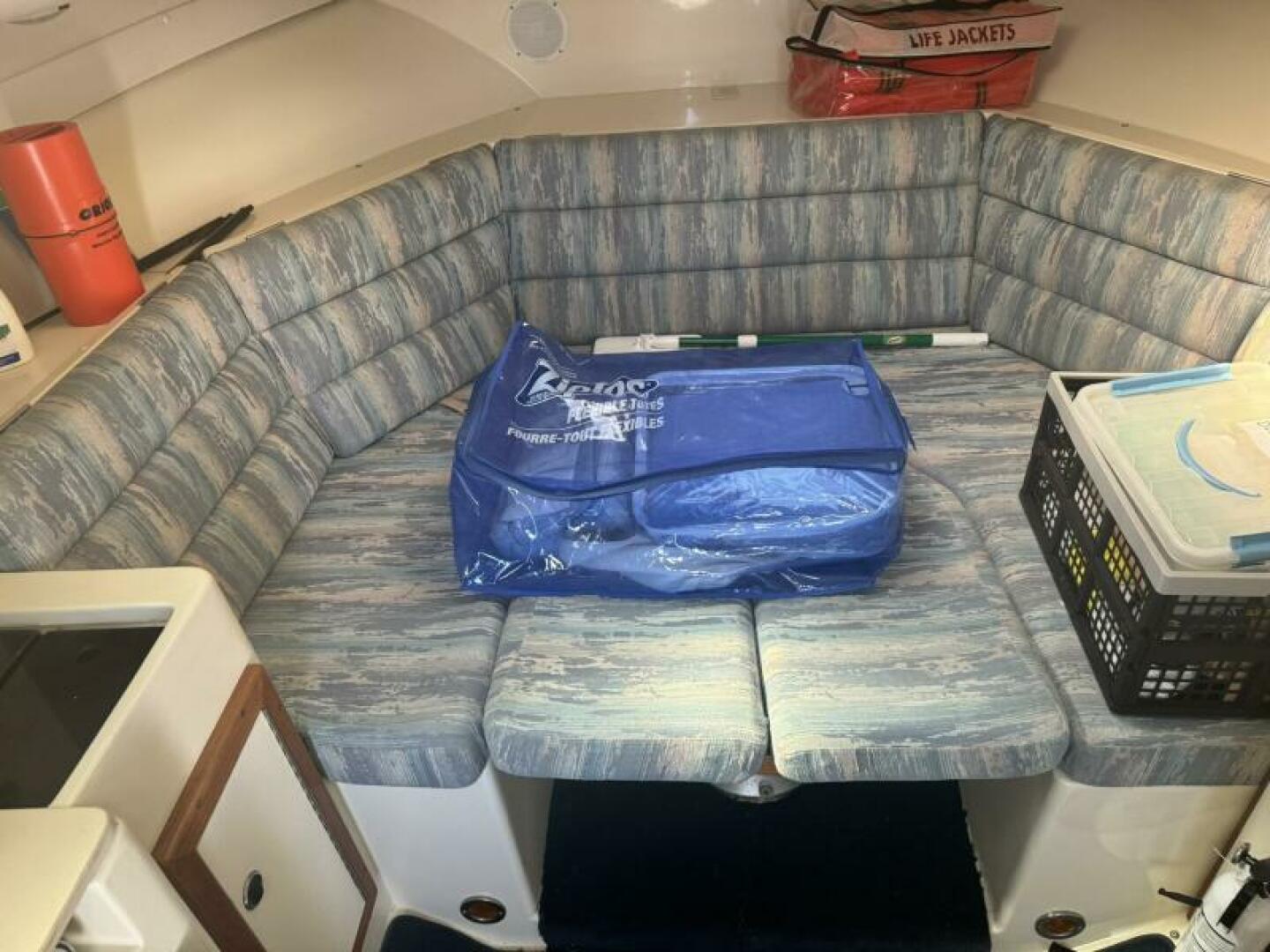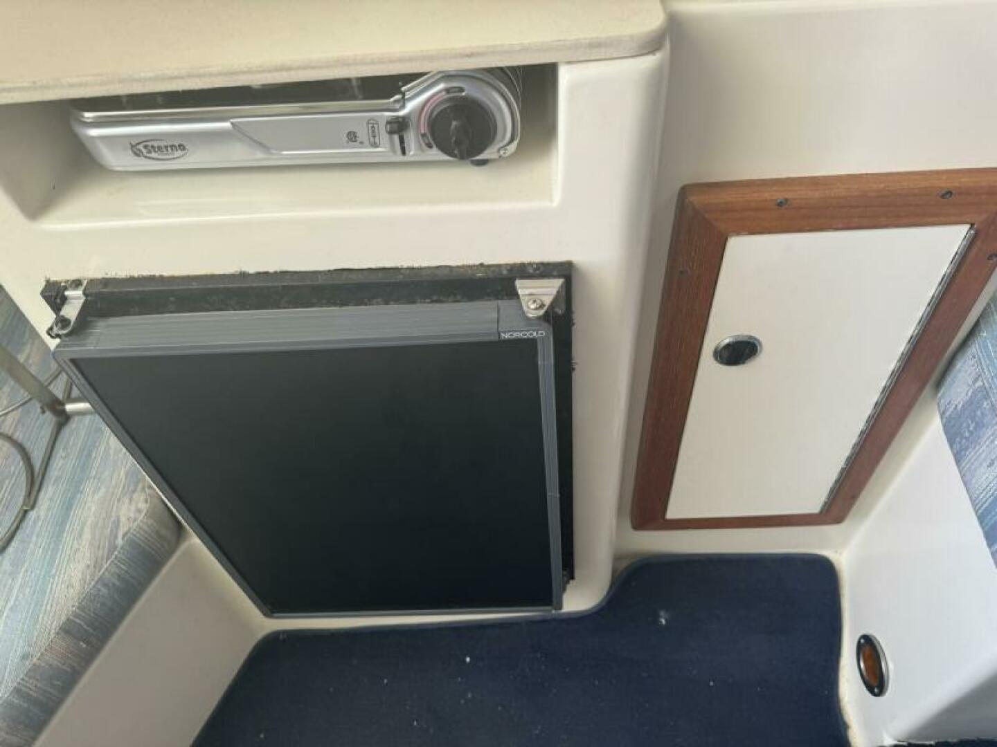 Below deck is a surprisingly roomy interior with the comforts of a larger vessel. With a full-service galley with fridge and microwave. Stand Up Head/Shower. Mid Cabin berth aft and a convertible U-Shaped dinette forward.