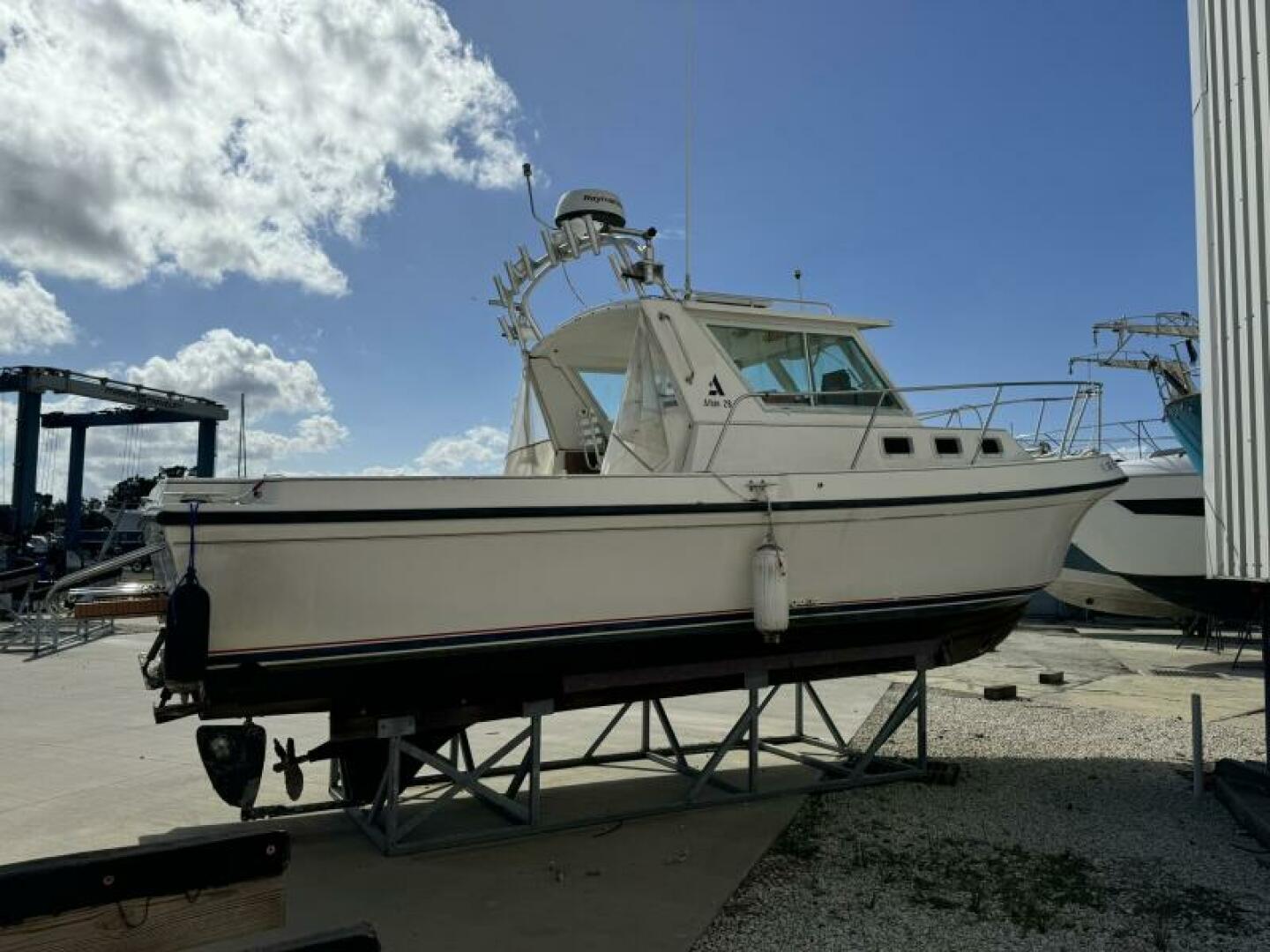 | Notable Upgrades: Raymarine Axiom 9RV, Raymarine Quantum radar, Garmin GPS/chartplotter, NexGen 3kW generator, bow thruster, air conditioning/heat, custom aluminum radar arch with rocket launchers. |