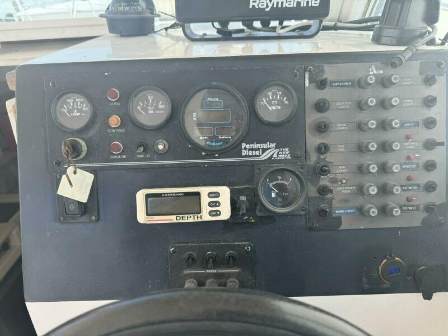 This boat is powered by a single 300HP Peninsular diesel with approximately 980 hours. The single-diesel shaft-
