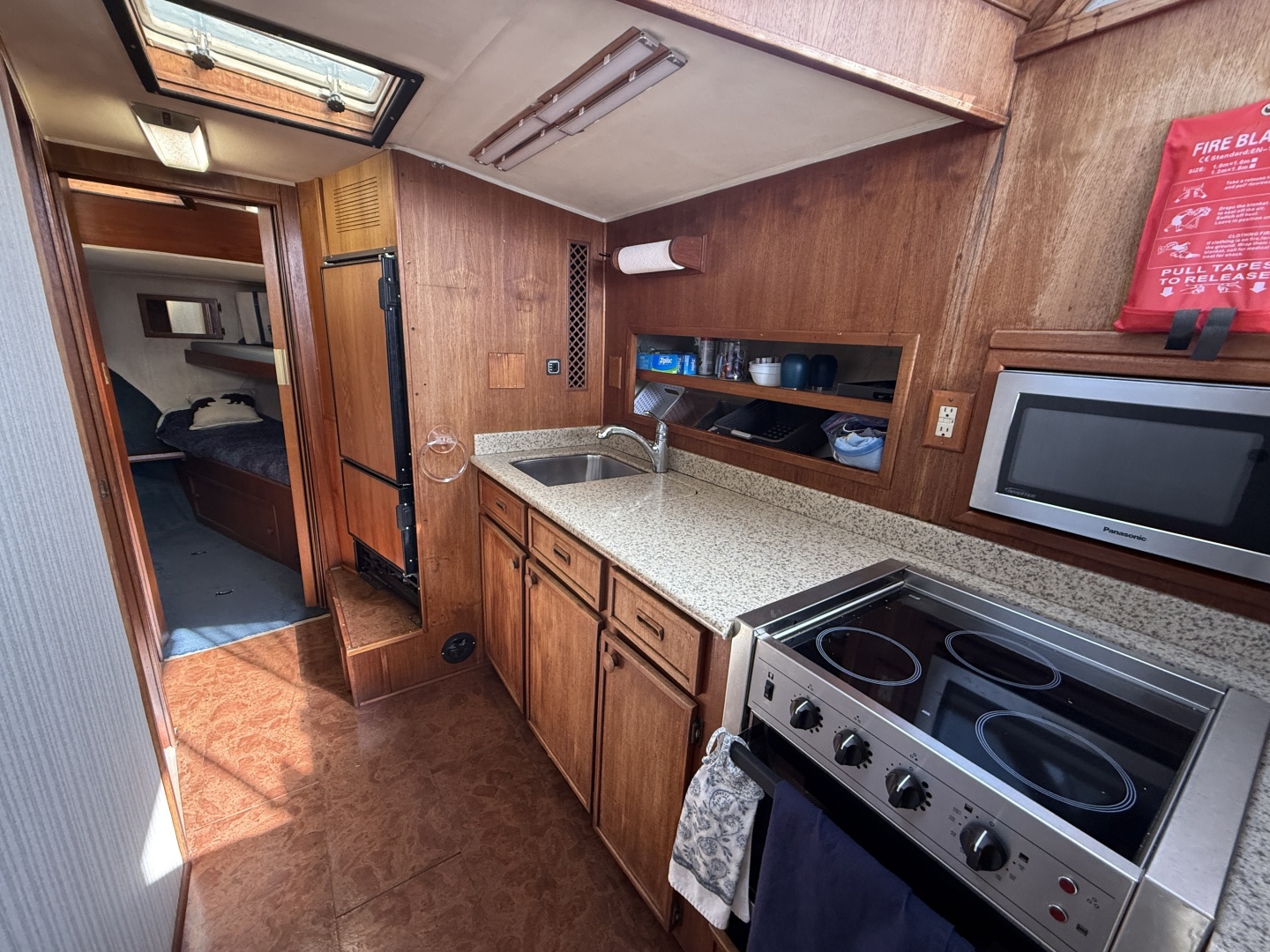 - Galley with stove, oven, microwave, refrigerator/freezer