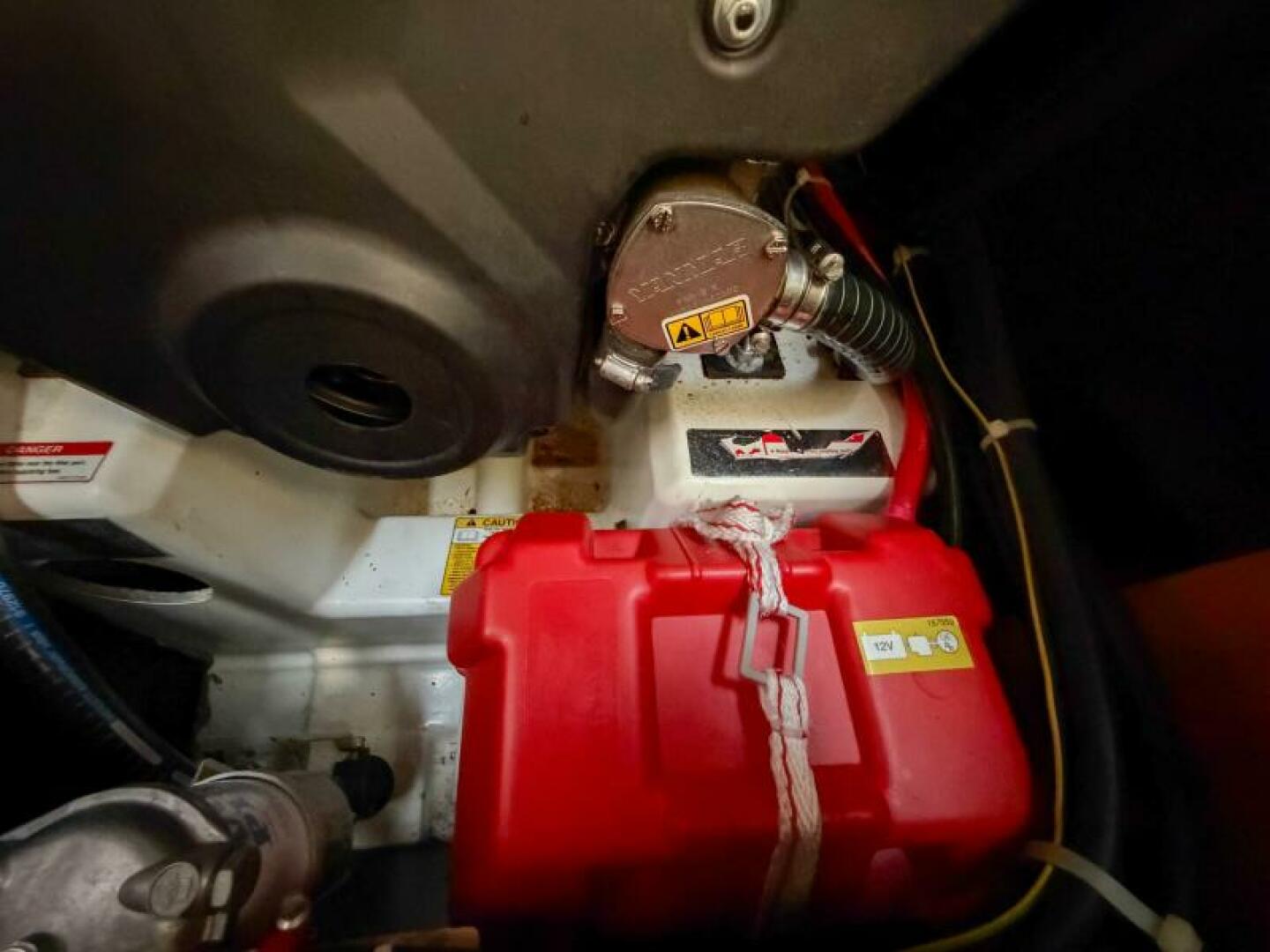 - Pressurized freshwater system with expansion tank and inline filter.