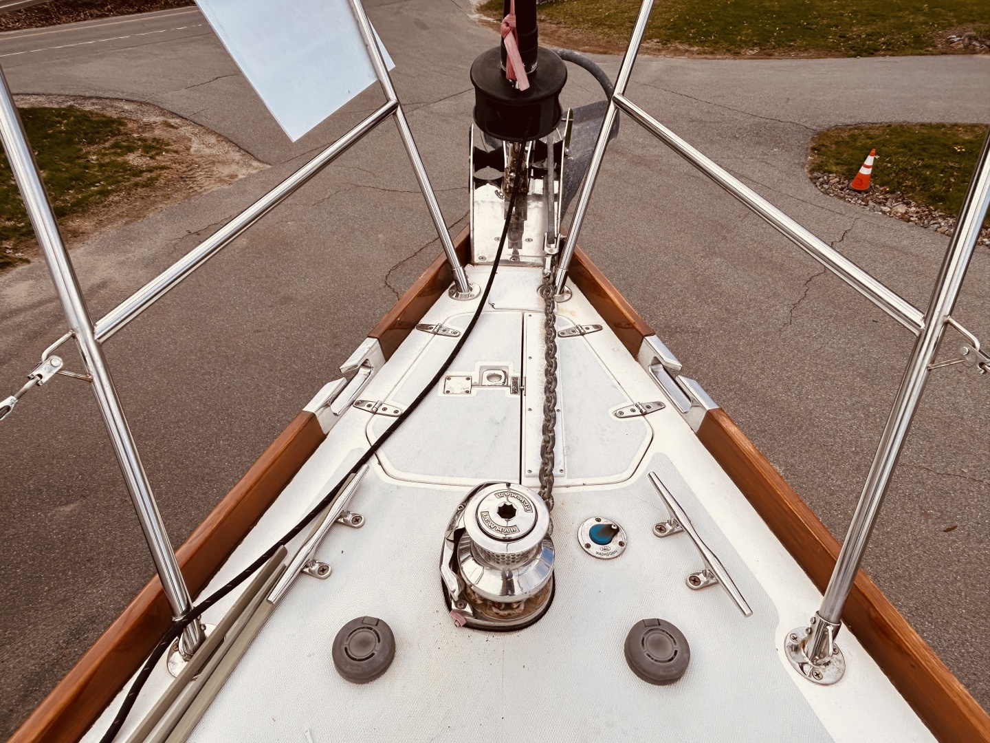 - Stainless steel chainplates thru-bolted to chainplate bulkheads which are bonded to the hull. Chainplates grounded to the keel.